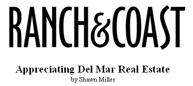 or more) home? The Bluff area, also west of Camino Del Mar and with access to the beach but higher up, is conversely made up of predominately full time residents. Lots are zoned R2, so even those that might have started out a healthy size, around 9,000 square feet, have long since been split. Houses and lots therefore both tend to be on the smaller side — most of today’s homes are converted beach bungalows — and the area attracts those who enjoy the beach lifestyle year-round. There are some families, but since lots are small, it’s primarily couples who are lured by an ability to walk to the restaurants and shopping of the village as well as the ocean. In May 2004, a home right on the bluff with unobstructed views — these homes are few and far between — sold for $7 million. Streets run perpendicular to the bluff, and the farther back from the ocean, the more affordable homes tend to be. Back from the edge, prices are ranging from $1.5 to $3 million. Continuing east of Camino Del Mar uphill to crest canyon (locals call the area “up on the hill”), scenery becomes more wooded, the streets windy, and beach-sized lots give way to more typical residential sizes. According to Hethcock, this area up on the hill attracts buyers who want more square footage but don’t want brand new. Since all new construction needs to be approved by the city’s Design Review Board — a process that can take as long as two years — there tends to be a lot of remodeling versus tearing down and starting from scratch. According to Hethcock, the result is that “everything in Del Mar has character, because people work with what they have.” Above Flower Hill Mall rests rural Del Mar. A country feel, most lots average about an acre in size. It’s county run, not city and in general, you get “close to a Rancho Santa Fe rural feel for substantially less money,” says Hethcock. Del