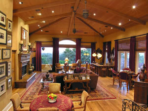 | Bella Vista sits atop a hill in Rancho Santa Fe with forever views to the Pacific Ocean and the Del Mar Racetrack. This Tuscan masterpiece, though new in 2000, recently underwent a dramatic and extensive remodel. Old World quality and craftsmanship is evident throughout the 6 bedroom, 7.5 bath home.In addition to a formal living room and dining room, the centerpiece of the home is the massive great room with panoramic views, a chef s kitchen, and distressed hickory and pecan floors. Venetian plaster walls in warm gold hues provide elegant backdrops throughout the entire home. |